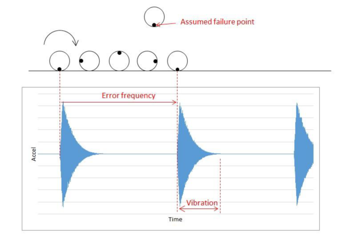 包絡分析是一種周期性振動故障檢測的有效方法,比如減摩軸承失效。ADP可用于生成加速度數(shù)據(jù)的包絡線(* 1)。包絡波形的快速傅里葉變換(FFT)可以顯示振動周期,這有助于識別系統(tǒng)中的缺陷部件。在該例中,ADP濾波器應配置為“帶通”:同時包含振動頻率和誤差頻率,排除直流噪聲和高頻噪聲。