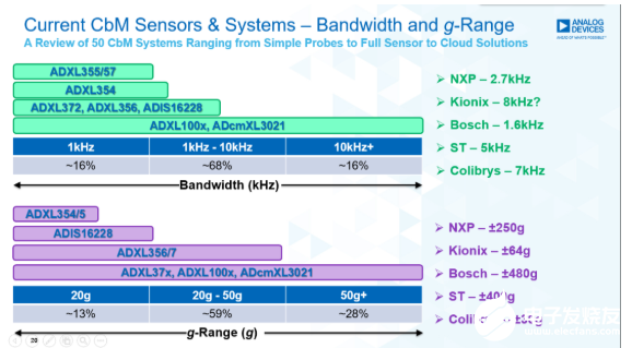 經(jīng)過對比不難發(fā)現(xiàn),兩款傳感器在靈敏度上非常接近,而ADXL1002隨頻率的相移相對于對比產(chǎn)品要小一半,底噪上壓電陶瓷要比MEMS小一些。在成本方面,Eason介紹,壓電陶瓷比MEMS高出許多——$100 vs $30。以下是ADI常用于振動監(jiān)測的加速度傳感器選型: