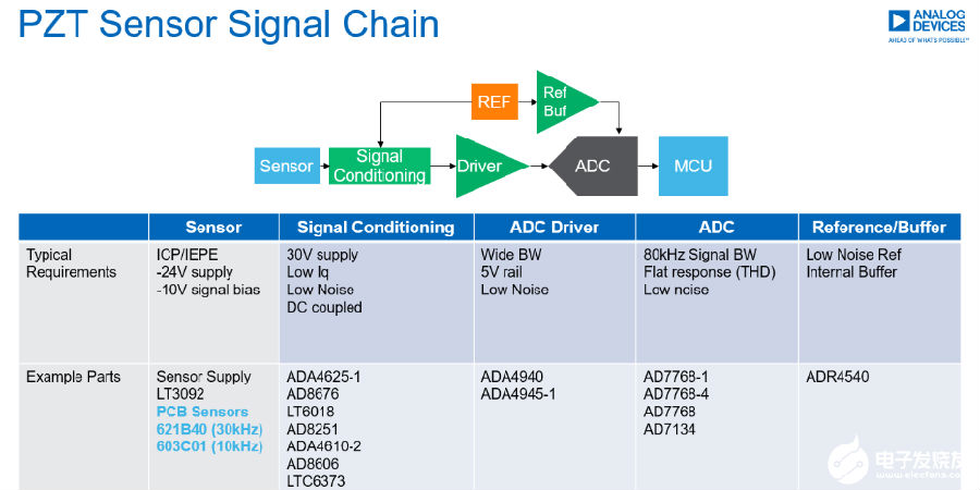 當(dāng)然,如果想繼續(xù)選用PZT傳感器,ADI也可以提供后續(xù)調(diào)理和數(shù)據(jù)采樣方案:
