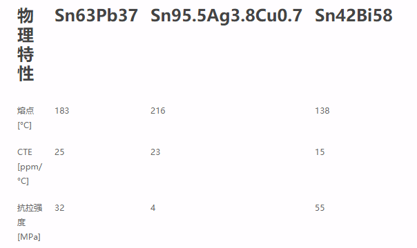 Sn63Pb37 是電子和微電子領(lǐng)域標準化生產(chǎn)時主要使用的焊接材料。就潤濕性、成本,熱傳導(dǎo)性和電傳導(dǎo)性而言,這種合金是完美的,但是對于封裝引起的應(yīng)力方面它是有局限性的。此外,歐共體對于在微電子領(lǐng)域全面取消使用鉛(Pb)已經(jīng)確定了日期(2006年7月)。因此,提出了以下兩種替代的材料。它們都具有25 ppm /°C以下的熱膨脹系數(shù)(CTE),并且是可能的解決方案。