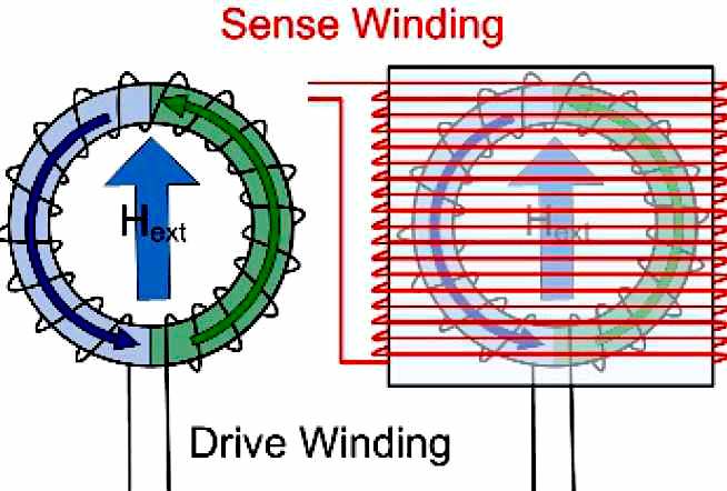 磁通門:由磁環(huán)芯和至少兩個線圈繞組組成:驅(qū)動繞組和感應(yīng)繞組