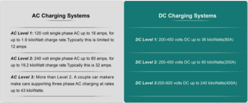 圖 1. 各種級(jí)別的交流和直流電動(dòng)汽車充電系統(tǒng)。圖片由 Bodo's Power Systems 提供