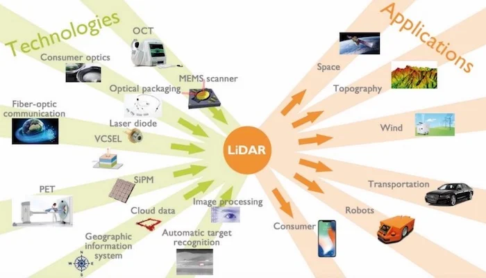 激光雷達技術(shù)和應用示例。圖片由 Yole Développement提供
