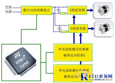 圖1:STM32F103HD可以同時處理雙電機控制和數字PF