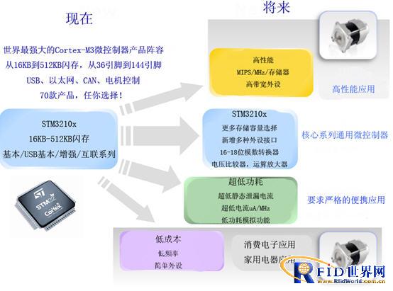 從功率開關分立器件,到復雜的系統(tǒng)芯片,意法半導體承諾以其獨有的產品組合長期支持電機控制市場。STM32微控制器產品線將繼續(xù)沿四個新方向部署,如圖3所示,其中兩個方向適用于電機控制。第一個產品線將面向低成本市場,開發(fā)低端的16位電機控制微控制器。另一個產品線以高性能為訴求,面向需要更高處理性能、更大存儲容量和高帶寬接口的應用。如此寬廣的產品組合結合Cortex-M3內核,勢必確立STM32架構適用于現(xiàn)在和未來電機驅動的多功能性。