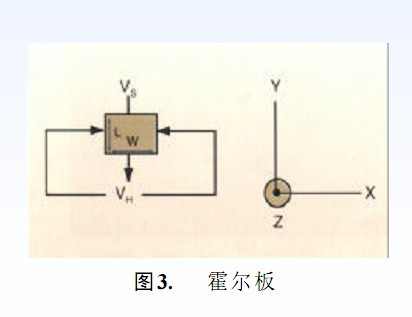 圖 3 中所示為導電材料的矩形薄板,沿Y軸施加了一個電壓VS,在板的霍垂直方向施加了一個磁場 B(沿 Z 軸),霍爾電壓VH由下式求得VH= uH(W/L)BVs 其中uH是霍爾遷移,W是霍爾板的寬度,L 是長度。 由于洛侖茲力作用在用導電材料制成的電荷載體上而產(chǎn)生的霍爾效應等于:F=q(vB) 其中 q 是電荷載體上的電荷,v 是電荷載體的速度,B 是磁場,力使電流變形,并將其擠向導電板的一側。這造成 X 軸上的等勢線變,形導致產(chǎn)生霍爾電壓。如果霍爾板的長度遠大于寬度,則霍爾電磁場與洛侖茲力相平衡。電流變成與 Y軸平行。最實用的半導體霍爾元件一般來說是正方形。此時電流相對于勵磁電壓有一個角度。