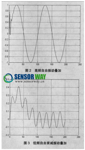 根據(jù)振動時間歷程獲得的要求不同來選擇不同>的測量儀器。周期振動、穩(wěn)態(tài)隨機(jī)振動可根據(jù)被測頻率范圍、振動幅值 大小來選擇儀器,而對于沖擊振動(如爆破、火箭沖擊視速 度、張拉釋放等非穩(wěn)態(tài)振動過程)選擇儀器時還應(yīng)注意考慮儀器的瞬態(tài)響應(yīng)影響。圖2為具有零頻特性的加速度計在受到?jīng)_ 擊正弦振動時的反應(yīng)曲線,在被測信號上疊加有高頻衰減信號,此為加速度計的自由振動項,用低通濾波可去掉其影響。 圖3為加速度計不是從零頻開始的記錄值。圖3中有一個低頻 衰!f過程,此為測量儀器的低頻下限引起的瞬態(tài)過渡過程,在數(shù)據(jù)處理時應(yīng)予以高通濾去除。