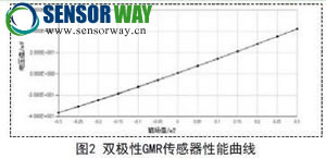 用于線性磁場測量的GMR傳感器應(yīng)具有良好的線性度,可測量正反兩個方向的磁場,因此,在測試芯片的選擇上可選擇雙極性的GMR傳感器直接進行測試或選擇單極性的GMR傳感器對其進行偏置處理,將其零點抬高。