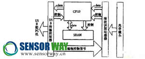 因此,利用CMOS數(shù)字圖像傳感器與USB接口數(shù)據(jù)傳輸來實(shí)現(xiàn)的指紋識(shí)別儀具有結(jié)構(gòu)簡單,體積小,便攜化等優(yōu)點(diǎn),F(xiàn)將介紹利用OMniVision公司的CMOS彩色數(shù)字圖像傳感器OV762M和cypress公司的EZ—USB AN2131QC USB控制傳輸芯片(內(nèi)部集成了增強(qiáng)形51內(nèi)核)來實(shí)現(xiàn)指紋信息的采集和USB傳輸,同時(shí)由于指紋傳感器輸出數(shù)據(jù)的速率(27MB/s)與USB控制器(AN2131QC)數(shù)據(jù)傳輸速率(12Mb/s)的不匹配,故系統(tǒng)采用了SRAM和CPLD構(gòu)成中間高速緩沖區(qū)。