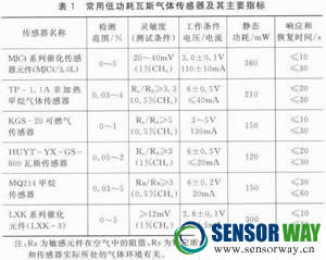 表1列出了目前常用低功耗瓦斯傳感元件及其主要指標(biāo)。從表中可以看出,常用低功耗瓦斯傳感器的功耗都在100mW以上,這對(duì)于由電池供電的無(wú)線(xiàn)傳感器節(jié)點(diǎn)來(lái)說(shuō)是非常不利的。而且表中所列傳感元件都有一定的響應(yīng)時(shí)間,即傳感元件供電后,需要等待其響應(yīng)一段時(shí)間,才能正確地反映瓦斯?jié)舛刃畔。較長(zhǎng)的響應(yīng)時(shí)間限制了無(wú)線(xiàn)瓦斯傳感器節(jié)點(diǎn)每次采集數(shù)據(jù)時(shí)的工作時(shí)間不能太短。例如,TP-1.1A非加熱甲烷氣體傳感器的響應(yīng)時(shí)間接近20 s.如果瓦斯傳感器節(jié)點(diǎn)采用該傳感元件,當(dāng)其采集一次數(shù)據(jù)時(shí),從給傳感器供電開(kāi)始,前20 s采集數(shù)據(jù)是沒(méi)有意義的,因?yàn)檫@時(shí)傳感元件處于響應(yīng)階段,其電壓值不能準(zhǔn)確地反映實(shí)際瓦斯?jié)舛刃畔。因此每采集一次?shù)據(jù),給傳感元件供電的時(shí)間至少持續(xù)20 s以上。對(duì)于如此高功耗的傳感元件來(lái)說(shuō),采集一次數(shù)據(jù)所消耗的能量是非常巨大的。這使得所設(shè)計(jì)的無(wú)線(xiàn)瓦斯傳感器節(jié)點(diǎn)的工作時(shí)間過(guò)短,以致不能達(dá)到實(shí)用化要求。