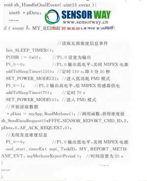 無(wú)線(xiàn)瓦斯傳感器節(jié)點(diǎn)的工作流程主要是在zb_HandieOsalEvent(events)編程實(shí)現(xiàn)的,具體程序?yàn)椋?br/>