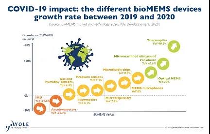 生物MEMS設(shè)備定義為集成到醫(yī)療設(shè)備中并用于IVD和生命科學(xué)的MEMS傳感器和微流控設(shè)備,2019年的市場規(guī)模為37億美元,預(yù)計到2025年將達(dá)到63億美元,2019年至2025年的復(fù)合年增長率為9.2%。