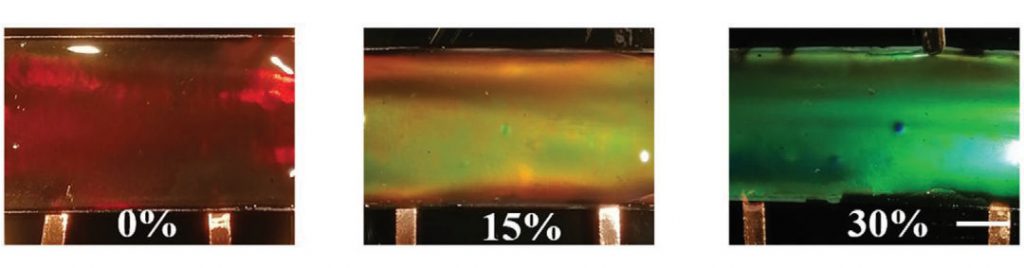 科學家設計了一種可拉伸的,粘性的,自修復的材料,該材料可以因運動而改變顏色,用于實時運動傳感器。