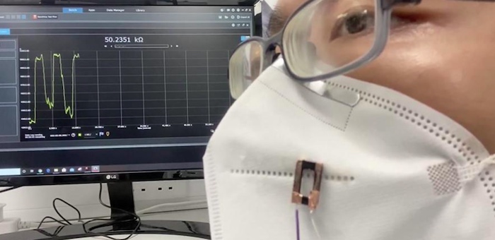 為解決這一挑戰(zhàn),劍橋大學(xué)的研究人員開發(fā)了一種新的打印方法,該方法可用于制造非接觸式,可穿戴,便攜式呼吸傳感器,該傳感器高度靈敏且生產(chǎn)成本低廉。它們還可以連接到諸如智能手機(jī)之類的電子設(shè)備上,以同時(shí)收集呼吸模式信息,聲音和圖像。