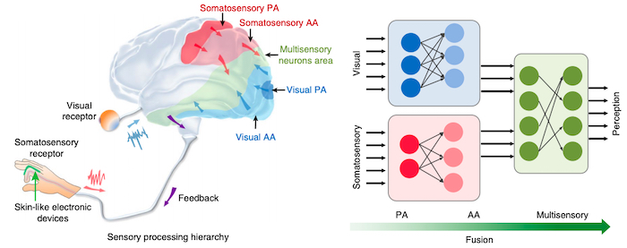 生物啟發(fā)系統(tǒng)由三種神經(jīng)網(wǎng)絡方法組成,在《自然電子》中有更詳細的說明。甲卷積神經(jīng)網(wǎng)絡,這對于早期視覺處理機器學習網(wǎng)絡中,軀體感覺信息處理的多層神經(jīng)網(wǎng)絡,并且一起融合了視覺和體感的信息的備用神經(jīng)網(wǎng)絡。