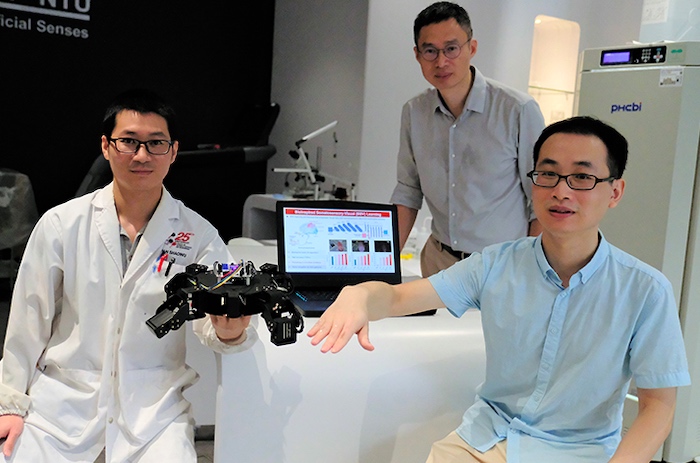 NTU新加坡的科學家將計算機視覺和類似皮膚的電子設備結(jié)合在一起,引導機器人穿過迷宮。圖片由NTU新加坡提供