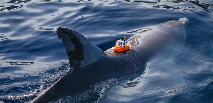 鹽度傳感器與超低功率水生標(biāo)簽集成在一起,并與寬吻海豚相連。這張照片是在西班牙瓦倫西亞的2018年研討會(huì)“海洋2.0:探索海洋動(dòng)物”中拍攝的。圖片來源:Robert Romosan