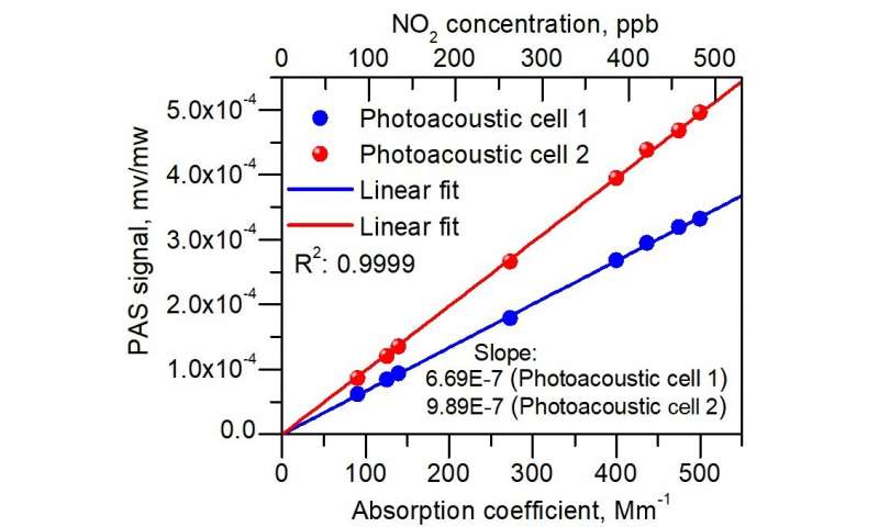 在實驗過程中,開發(fā)的D-PAS傳感器與商用NOX分析儀在大氣中測量NO 2時的比對和一致性證明了這種新型D-PAS傳感器的可靠性。