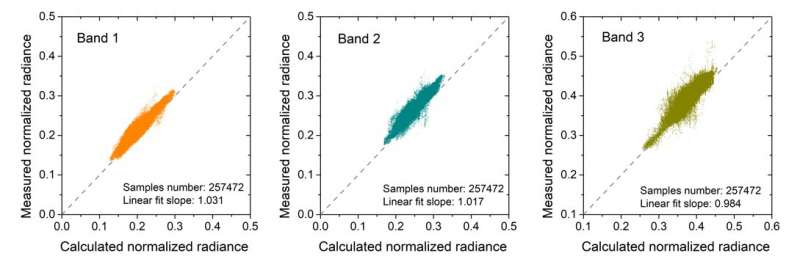 研究人員檢測了傳感器的在軌輻射靈敏度變化,并評估了它們的整體輻射檢測性能。他們還驗證了交叉輻射校準(zhǔn)方案,將POSP的高精度板載校準(zhǔn)系數(shù)轉(zhuǎn)移到DPC的寬視場。
