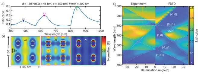 鑒于此次設(shè)計(jì)方法的普遍性,加之納米顆粒陣列窄光譜等離子表面晶格共振的特性,接下來(lái)會(huì)應(yīng)用到不同光學(xué)或電子光學(xué)領(lǐng)域中去。
