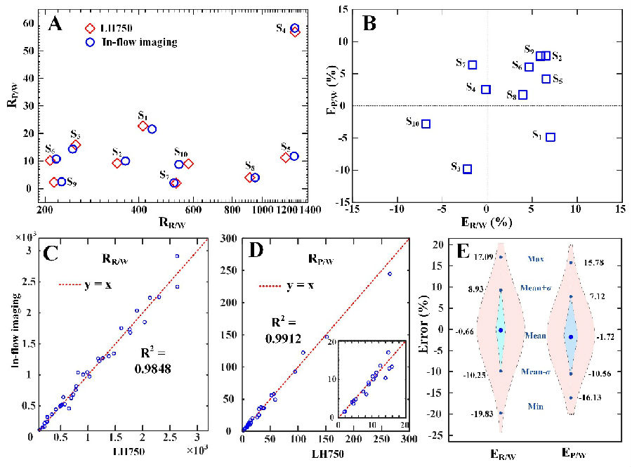 在微流控芯片方面,團(tuán)隊(duì)利用交錯(cuò)擠壓結(jié)構(gòu)實(shí)現(xiàn)細(xì)胞單層直線排列,提出基于縮/擴(kuò)結(jié)構(gòu)的單細(xì)胞定點(diǎn)翻轉(zhuǎn),仿真分析了寬流速范圍內(nèi)(出口平均流速50~2000 μm/s)芯片功能的有效性及穩(wěn)定性。在單細(xì)胞識(shí)別、計(jì)數(shù)方面,團(tuán)隊(duì)基于軌跡跟蹤的多角度形態(tài)學(xué)關(guān)聯(lián)分析方法,成功將單細(xì)胞識(shí)別平均精度由0.8622提升至0.9934,可有效剔除細(xì)胞重疊、聚團(tuán)導(dǎo)致的誤識(shí)、漏識(shí)。在系統(tǒng)性能層面,實(shí)現(xiàn)測(cè)試通量約為8000個(gè)細(xì)胞/分鐘,樣本濃度一致性極限時(shí)長(zhǎng)可達(dá)1小時(shí)。在臨床樣本檢測(cè)靈敏度及特異性方面,該研究開展了10例雙盲測(cè)試及75例臨床患者的大規(guī)模樣本分析驗(yàn)證。結(jié)果表明,POCT設(shè)備與臨床用檢驗(yàn)設(shè)備(血球儀)的細(xì)胞子類計(jì)數(shù)結(jié)果高度一致(R2>0.98),充分驗(yàn)證了該方法的可行性及POCT設(shè)備在血細(xì)胞濃度異常現(xiàn)場(chǎng)診斷方面的應(yīng)用潛力。