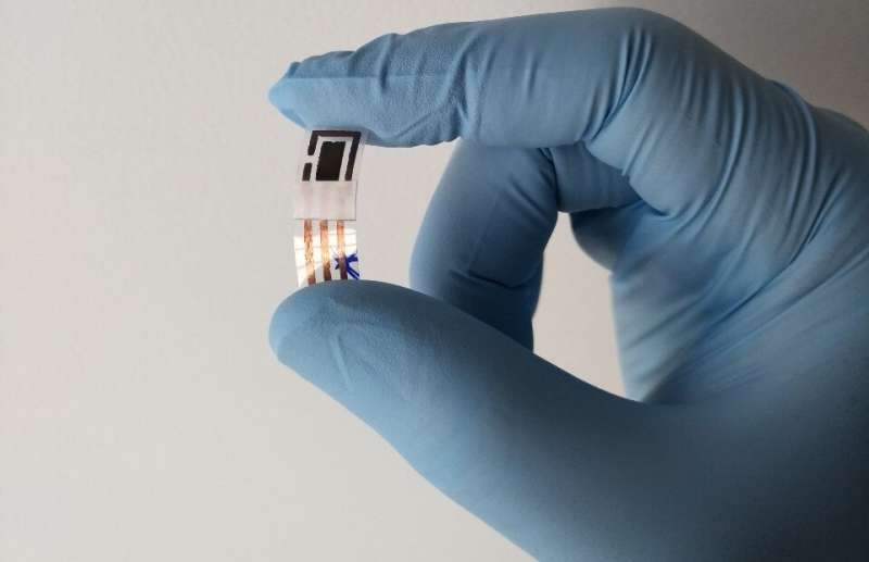 由普通材料廉價(jià)制成的柔性銅傳感器:導(dǎo)電銅膠帶、透明薄膜片、紙質(zhì)標(biāo)簽、指甲油、電路制造解決方案和丙酮。學(xué)分:安德森·德坎波斯