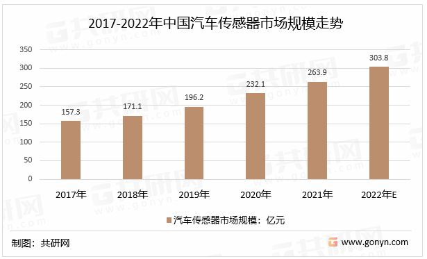 2017-2022年中國汽車傳感器市場規(guī)模走勢