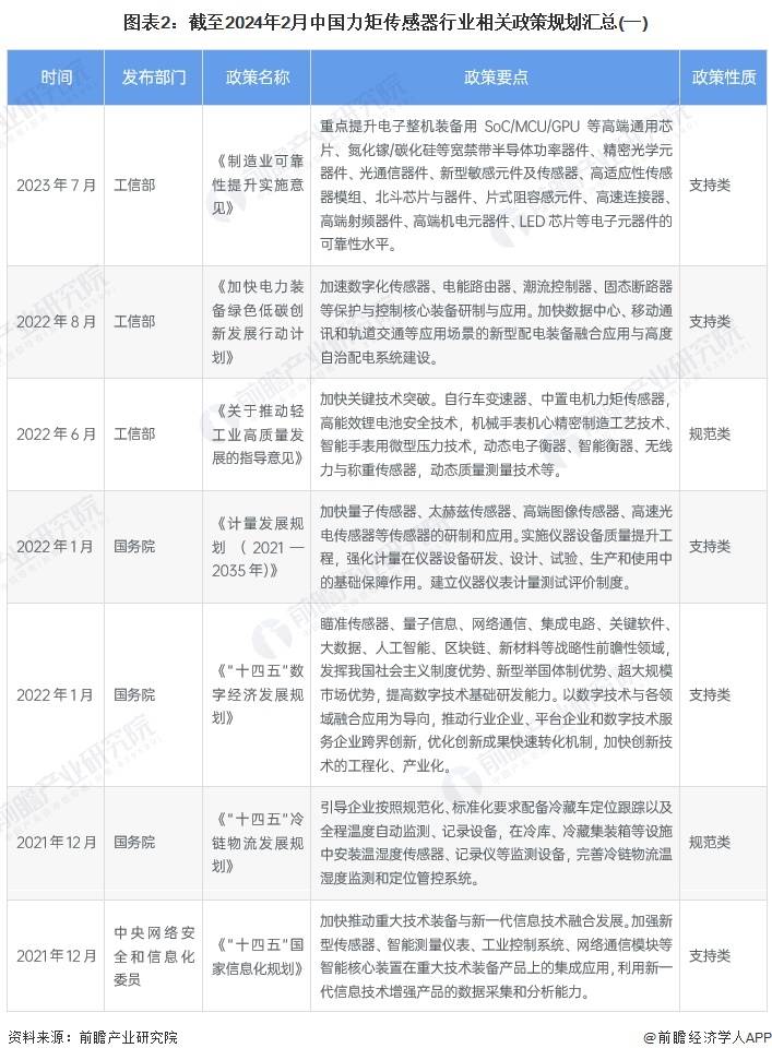 ——國(guó)家層面力矩傳感器行業(yè)政策匯總