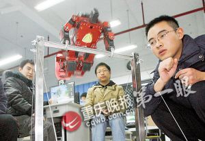 滅火機器人、醫(yī)療服務(wù)機器人、老鼠機器人、雙足競步機器人、跳舞機器人……當如此多的機器人來到面前時,你不要以為誤入電影《機器人總動員》里,你只不過走進了重慶郵電大學(xué)的一間實驗室。這里的機器人,都是在校學(xué)生玩出來的杰作。