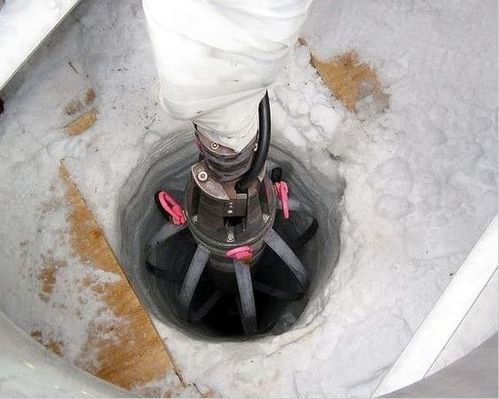 冰立方增強(qiáng)型熱水鉆的鉆頭從冰層中顯露出來(lái)。鉆出一個(gè)冰洞需要耗費(fèi)18170升的汽油,并融化掉757立方米的冰塊。