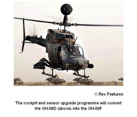 據(jù)英國《飛行國際》2011年1月4日報道,美國陸軍已做出了啟動OH-58D升級項目的決定,該項目價值19.8億美元,是OH-58D在服役的20年間首個主要的技術(shù)升級項目。