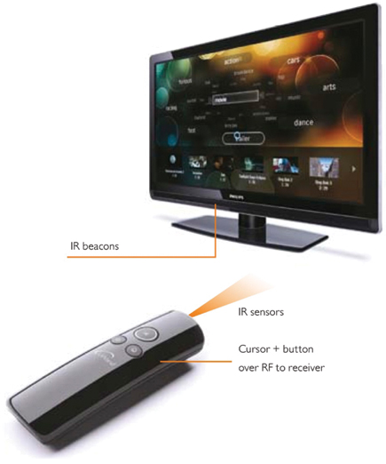 菲利浦公司的uWand技術(shù)非常適合與安裝有MEMS的控制器相同的應(yīng)用,但不使用MEMS器件。相反,它集成了一個紅外攝像頭用于檢測來自電視的紅外光,因此不用陀螺儀就能實現(xiàn)運動跟蹤。