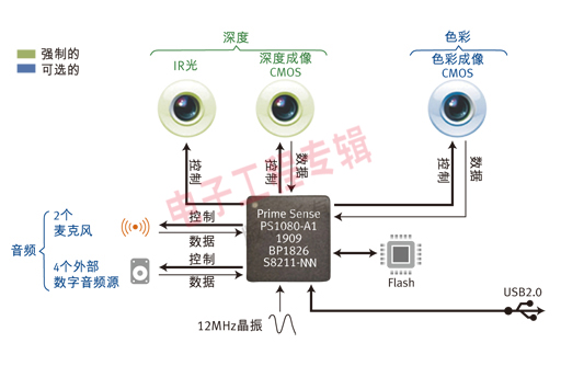 微軟的Xbox Kinect以PrimeSense參考設(shè)計為基礎(chǔ),使用兩個CMOS成像器(一個用于紅外光,一個用于可見光)檢測3D深度,因此系統(tǒng)能夠輕松辨別房間內(nèi)的游戲玩家和背景物體。