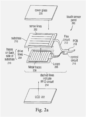 據(jù)了解,這是一個可以位于觸控屏幕上的RFID標簽讀取器,可以與觸摸傳感器電路板上的RFID電路結合,共用的金屬天線可以使設備不通過接觸就可以實現(xiàn)RFID應答。