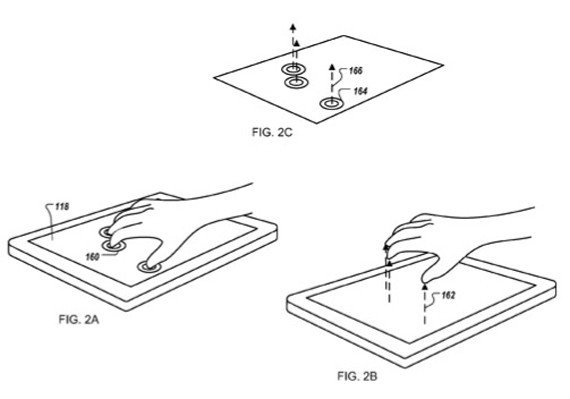 這項(xiàng)專(zhuān)利涉及兩個(gè)較為晦澀的概念。第一個(gè)概念涉及利用近距離傳感器和觸摸屏以3D形式記錄手勢(shì)。比如,用戶(hù)用三根手指在觸摸屏上擺出三角形狀,然后“縮放”形成金字塔造型,以用于CAD應(yīng)用。