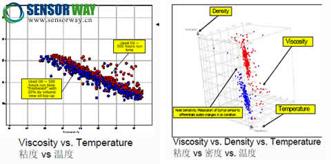由于油液污染的成因及環(huán)境因素較復(fù)雜,因此該原理傳感器在生產(chǎn)實(shí)踐中并未得到很好的應(yīng)用。例如:由于發(fā)動(dòng)機(jī)活塞竄漏、燃油延遲噴射導(dǎo)致廢氣處理系統(tǒng)處理后的廢氣進(jìn)入汽缸、或者高壓共軌泄漏導(dǎo)致了標(biāo)準(zhǔn)的2 號(hào)柴油污染了機(jī)油,會(huì)引起機(jī)油的粘度下降,但是對(duì)機(jī)油的介電常數(shù)和密度沒(méi)有影響。