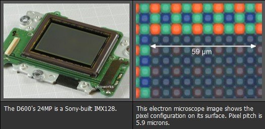 最后讓我們來仔細(xì)看一眼D600的24MP傳感器,和推測的一樣,D600采用的正是索尼制造的IMX128傳感器。