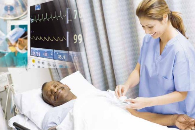 監(jiān)護(hù)儀用于診療環(huán)境(如手術(shù)室、急救室、加護(hù)病房、重癥病房、以及日益普遍的病人家庭),以監(jiān)測(cè)和顯示病人身體的各種主要情況,包括心電圖、SpO2(脈搏血氧飽和度)、血壓、呼吸和溫度等。監(jiān)護(hù)儀可以是獨(dú)立儀器,也可以是多參數(shù)儀器。呼吸監(jiān)測(cè)顯示有關(guān)呼吸的關(guān)鍵指數(shù)。所用儀器包括二氧化碳分析儀(測(cè)量呼吸氣中二氧化碳濃度或分壓力)和肺活量計(jì)(測(cè)量呼吸進(jìn)出流量)。血壓監(jiān)測(cè)可用插入式的壓力傳感器或無(wú)創(chuàng)傷性的血壓袖帶(無(wú)創(chuàng)血壓測(cè)量)。葡萄糖監(jiān)測(cè)是測(cè)量間質(zhì)液中的葡萄糖含量。持續(xù)不斷地進(jìn)行這種測(cè)量可以檢驗(yàn)血液里的葡萄糖含量對(duì)胰島素、運(yùn)動(dòng)、食物和其它因素的反應(yīng)。這種葡萄糖測(cè)量器用于重癥病房、手術(shù)室或恢復(fù)室,用來(lái)測(cè)量病人的血糖含量。