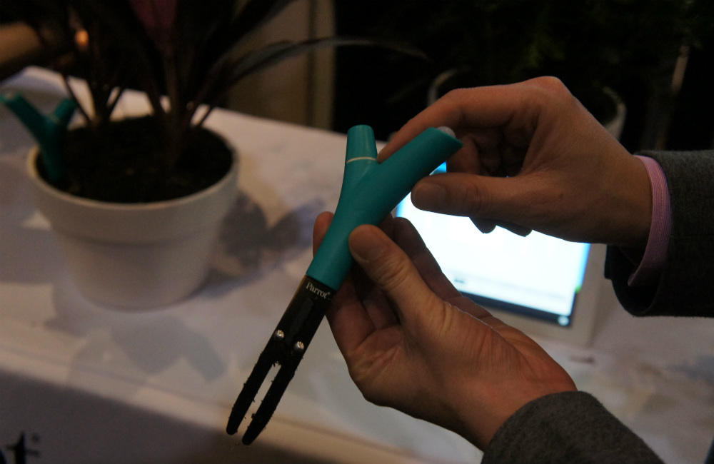 花之力量傳感器是由鸚鵡公司研發(fā)的,后者是一個(gè)因在去年消費(fèi)類(lèi)電子產(chǎn)品展銷(xiāo)會(huì)(CES)上展示一架自己研發(fā)的鸚鵡無(wú)人駕駛直升飛機(jī)而聲名鵲起的無(wú)線(xiàn)科技公司。這次,在2013年1月6日的CES上,這款固定的植物傳感器再次讓鸚鵡公司出盡風(fēng)頭。