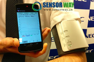 NEC公司稱,該設(shè)備是和橫濱市立大學(xué)醫(yī)學(xué)院合作開(kāi)發(fā)的,只要施加相當(dāng)于100毫米汞柱收縮壓的擠壓程度就可以獲得有關(guān)健康數(shù)據(jù)的準(zhǔn)確值,傳統(tǒng)計(jì)量器產(chǎn)生的是180—200毫米汞柱的收縮壓。