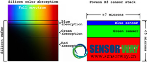 彩色圖像傳感器已應(yīng)用到幾乎所有常見(jiàn)的數(shù)碼相機(jī)和電子設(shè)備中(反射式的、全自動(dòng)的、網(wǎng)絡(luò)攝像頭、手機(jī)相機(jī)、平板電腦等等),這些傳感器由彩色濾光片(通常為紅、綠、藍(lán)三色,亦稱RGB)及其下方的單色傳感器(黑色和白色)構(gòu)成。這種傳統(tǒng)結(jié)構(gòu)限制了傳感器中的每個(gè)像素只能感應(yīng)紅、綠、藍(lán)三色中的一種。要想從其它的顏色里面提取信息,就必須用到一些算法,而這一般都是制造商的最高機(jī)密。