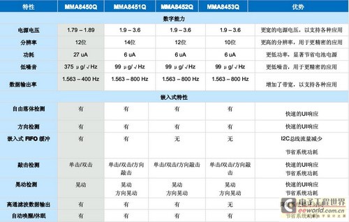 日前,飛思卡爾傳感器部亞太區(qū)和全球代理商渠道發(fā)展總監(jiān)陳光輝介紹了剛剛在日本FTF上發(fā)布的MMA845xQ系列3軸加速度傳感器,其表示該系列產(chǎn)品為業(yè)界最低功耗,專為功耗敏感的消費級電子打造的系列產(chǎn)品;提供每秒1.5至800采樣的廣泛ODR范圍,以及按比例的電流消耗;其最高可支持14位分辨率,而噪音僅為99ug/hz。