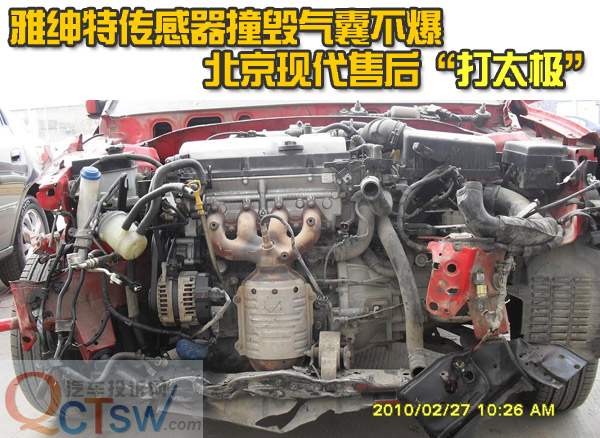 說(shuō)起自己的北京現(xiàn)代雅紳特,王女士和丈夫就很傷心,她們這臺(tái)汽車是2009年12月02日購(gòu)買的。僅僅2個(gè)月零5天后,王女士的丈夫駕車途經(jīng)滄州時(shí),大約上午9點(diǎn)多,汽車意外地高速撞上了路邊的護(hù)欄,因車速過(guò)快,巨大的撞擊將車的頭部全部報(bào)廢,不過(guò),萬(wàn)幸的是沒有人員受到嚴(yán)重傷害。